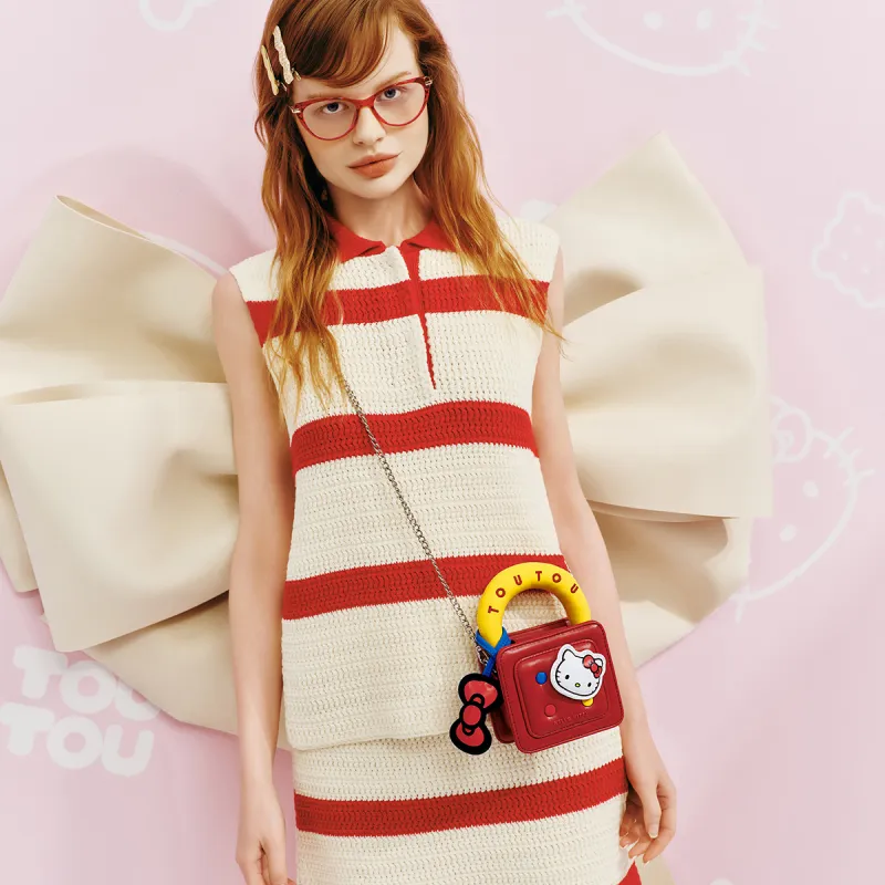 TOUTOU 헬로키티 콜라보레이션 헬로키티 PU 가방 미니 여성 체리 레드 - POIZON