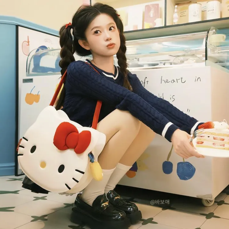 TOUTOU 헬로키티 콜라보레이션 헬로키티 합성 가죽 숄더백 레귤러 여성 배색