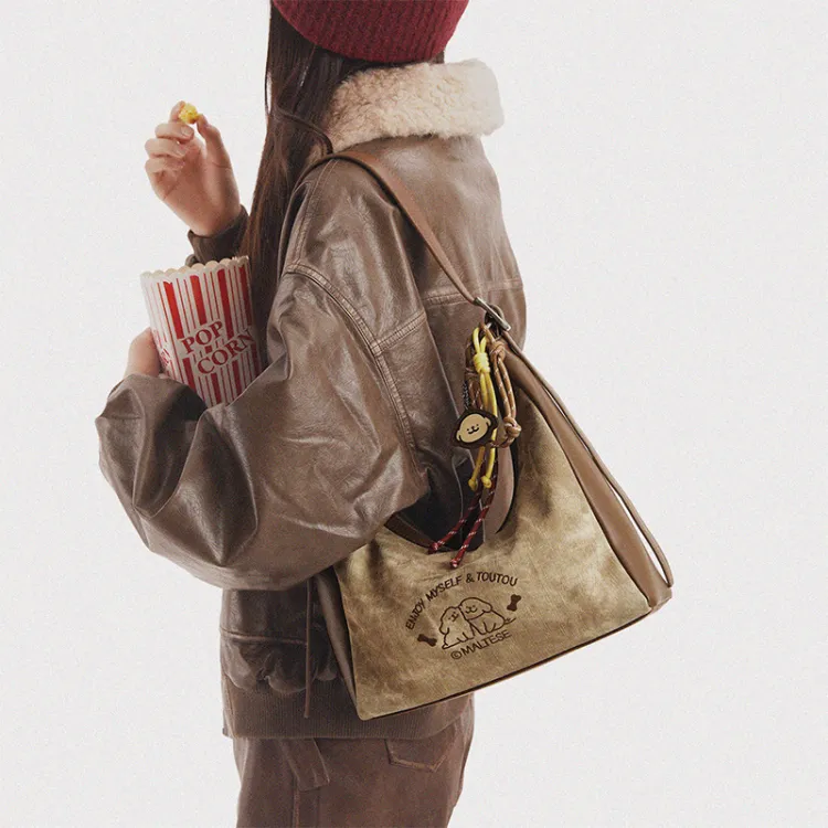 TOUTOU 몰티즈 PU 숄더백 레귤러 여성 카라멜 라떼 - POIZON