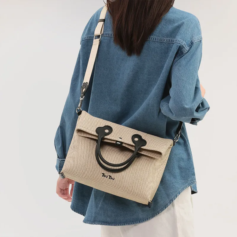 TOUTOU PU 캔버스 백, 크로스백 L 여성 웜 애프리콧