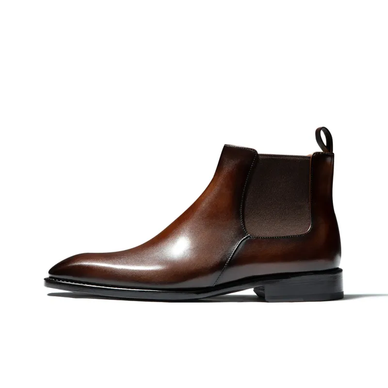TRUFFAUT 클래식 스퀘어 토 부드러운 마감 부츠 단목 첼시 부츠 남성