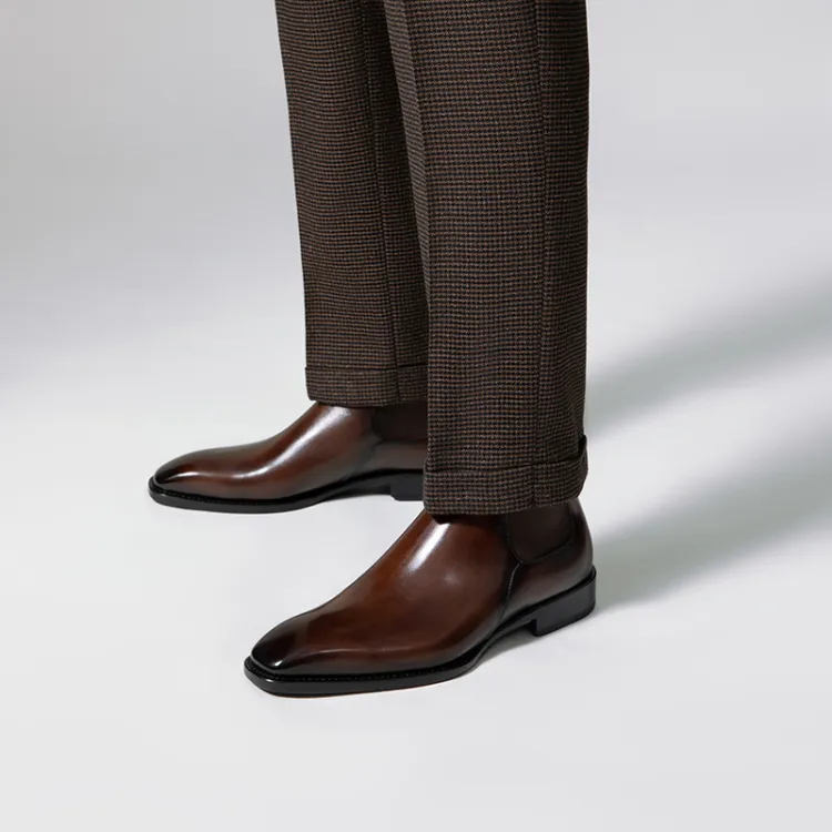 TRUFFAUT 클래식 스퀘어 토 부드러운 마감 부츠 단목 첼시 부츠 남성 - POIZON