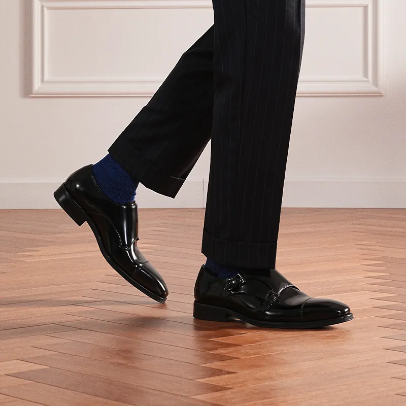 TRUFFAUT 리파인드 스퀘어 토 Monk 신발 정장화 남성 블랙 - POIZON
