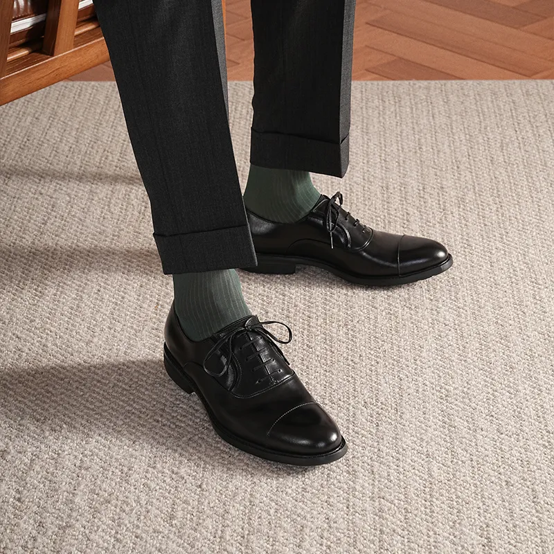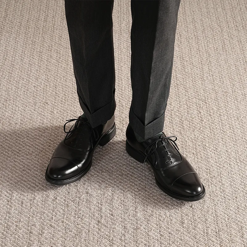 TRUFFAUT 초경량 부드러운 밑창 천연 가죽 옥스퍼드 신발 정장 신발 남성 블랙