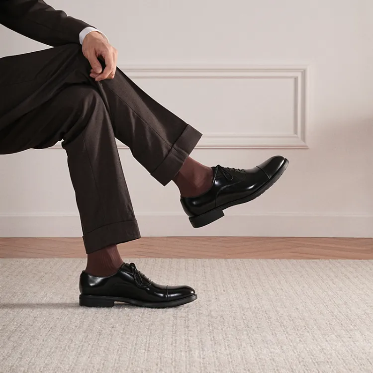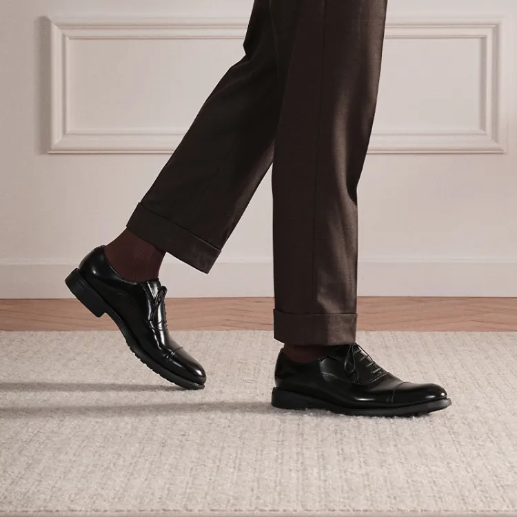 TRUFFAUT 초경량 부드러운 밑창 천연 가죽 옥스퍼드 신발 정장 신발 남성 블랙 - POIZON
