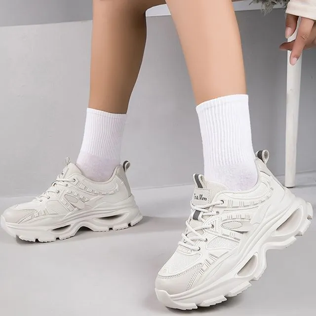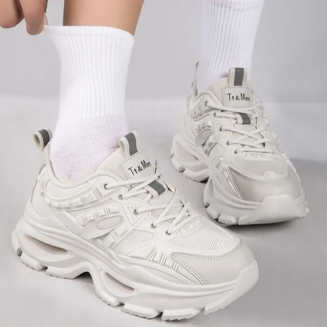 TT&MM 흡습속건, 내마모성, 가벼움, 통기성 좋은, 방수, 미끄럼 방지 로우탑 청키 스니커즈 여성 화이트