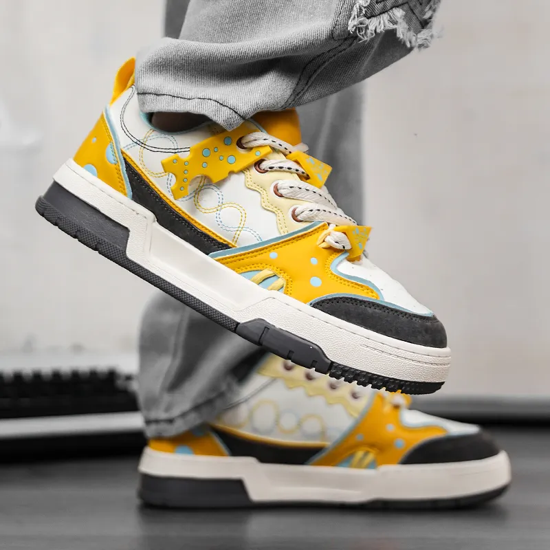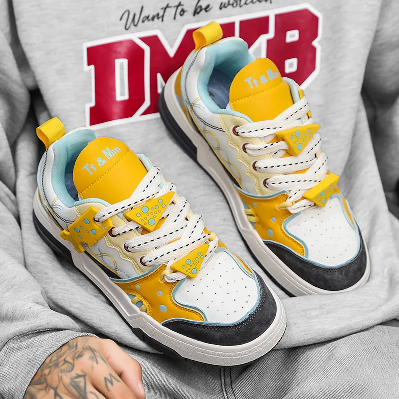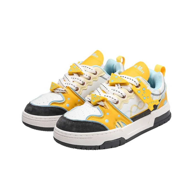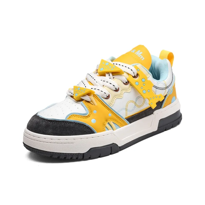 TT&MM 쿠셔닝, 키높이, 내마모성, 가벼움, 통기성 좋은, 미끄럼 방지 로우탑 스케이트보드 신발 남녀공용 치즈 - POIZON