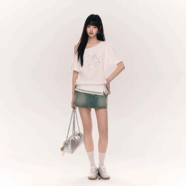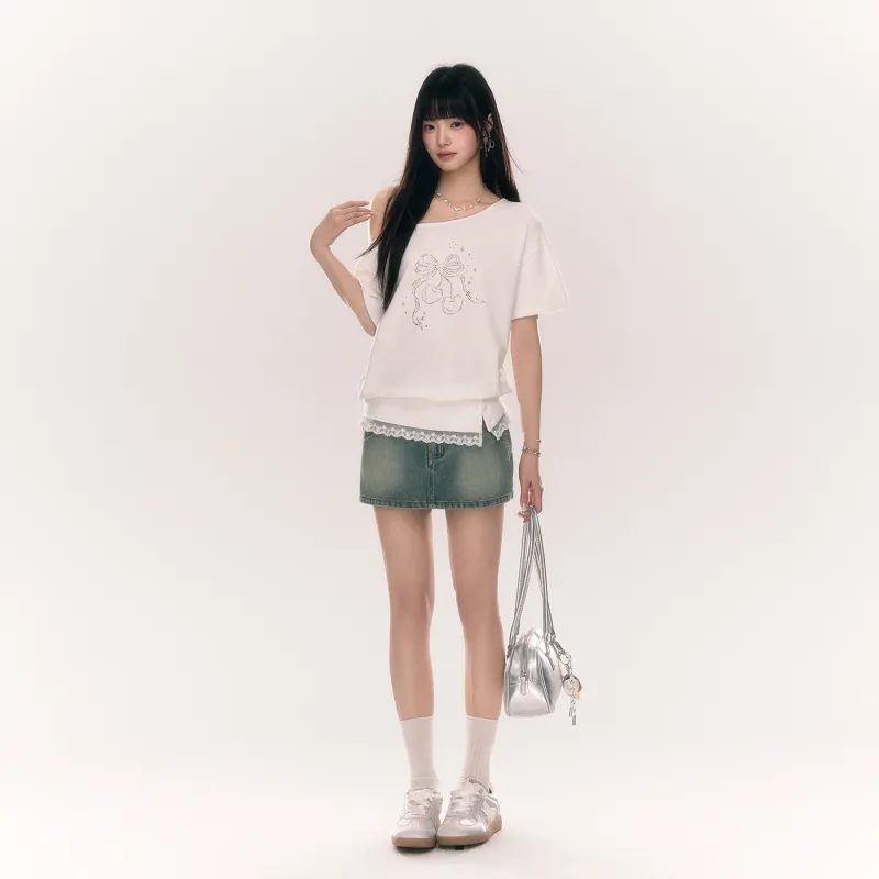 Umoumo 화이트 여성 티셔츠
