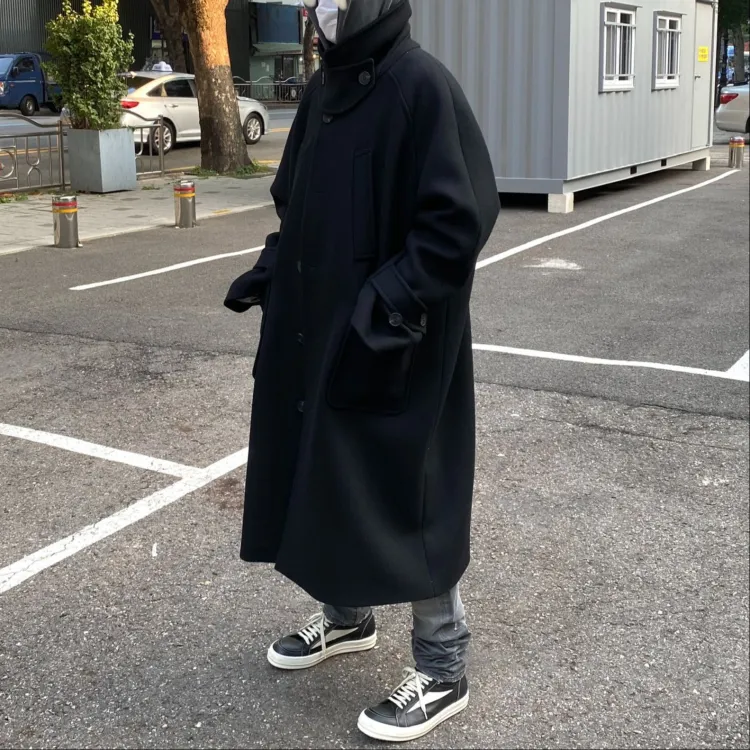 언더마이카 리전.02 발마칸 오버사이즈 울 코트 블랙 - POIZON