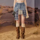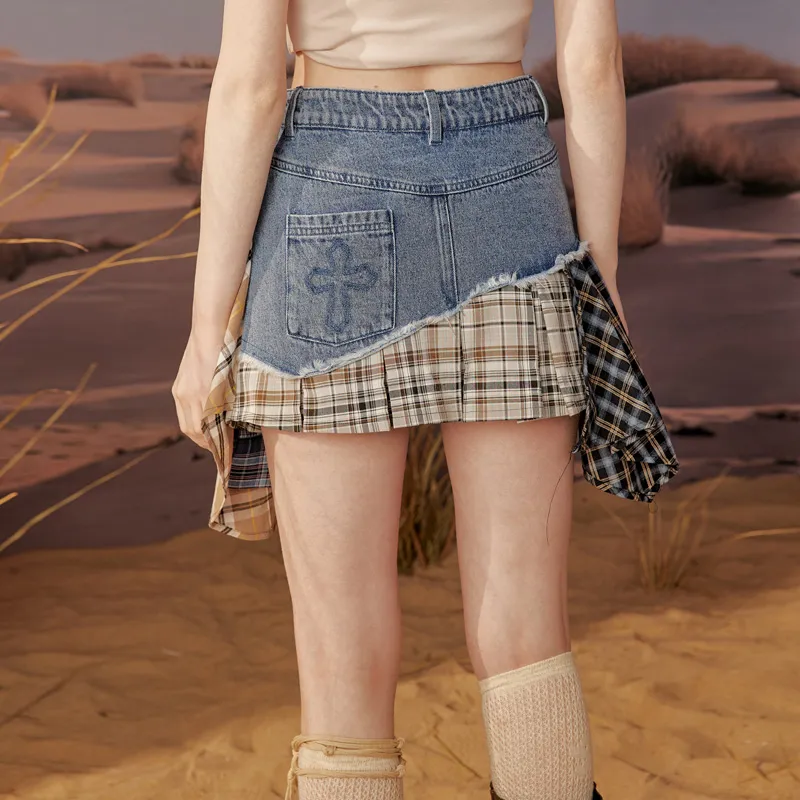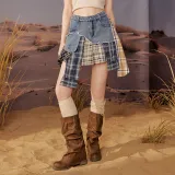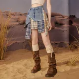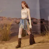 카키 체크: 70.3% 폴리에스터, 27.7% 비스코스, 2% 스판덱스 그레이 체크: 58% 면, 35.1% 비스코스, 6.9% 폴리에스터 (기타 섬유 소량 함유)