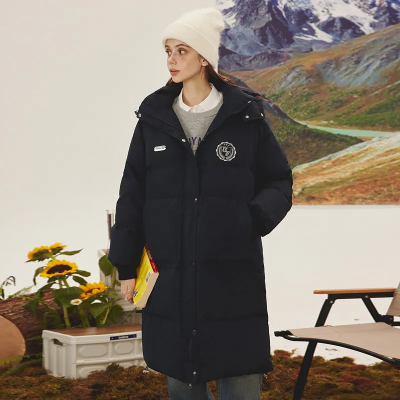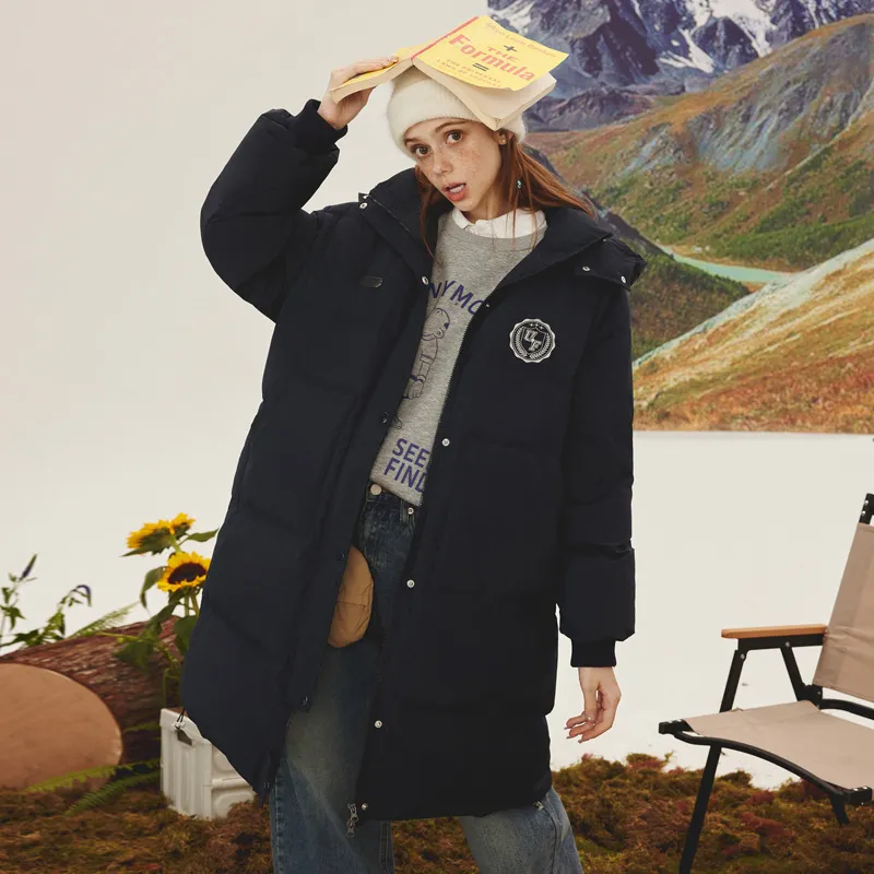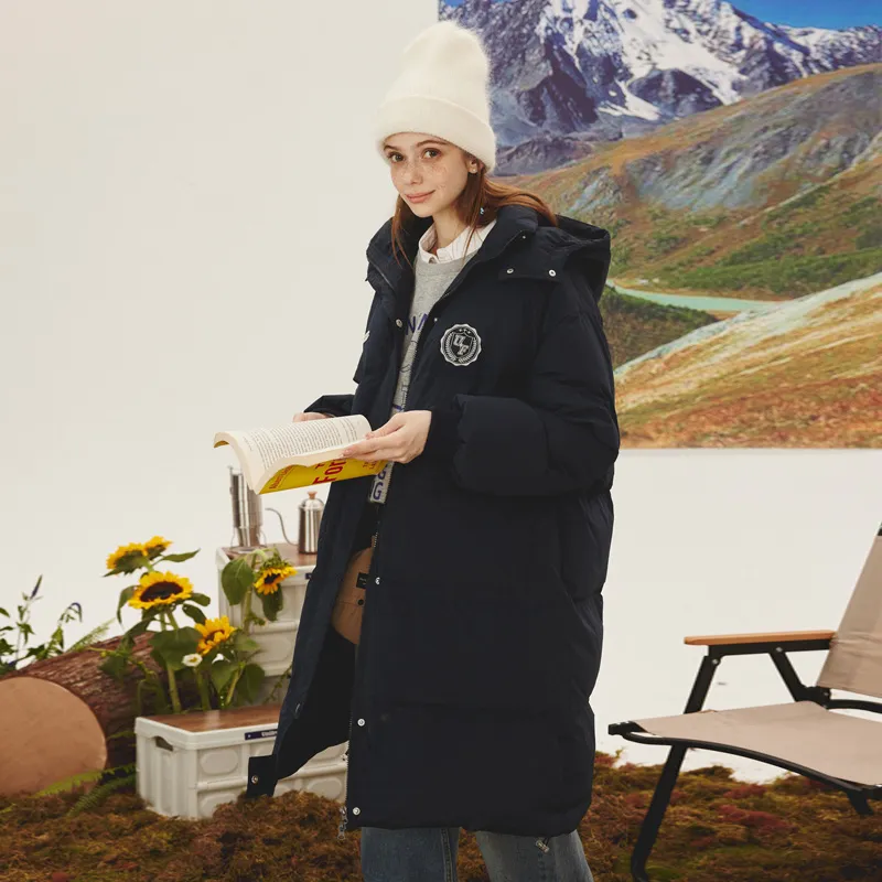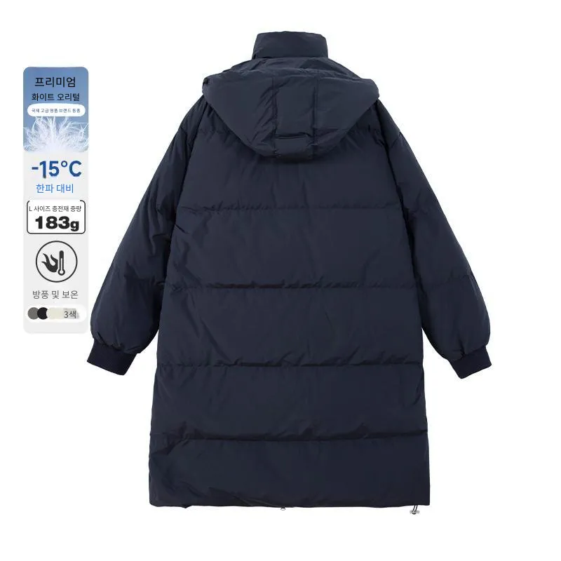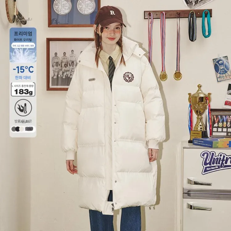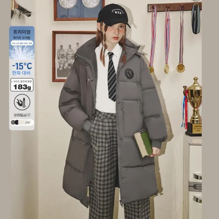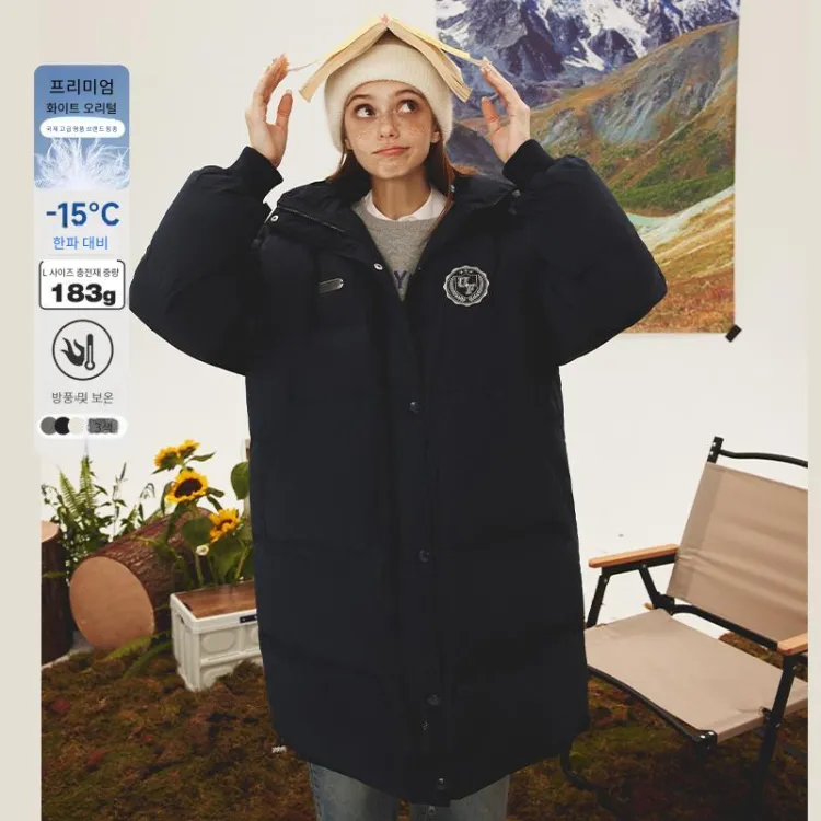 원단: 100% 폴리에스터 안감: 100% 폴리에스터 안감 원단: 100% 폴리에스터 본체 충전재: 80% 화이트 오리털, 다운 함량 155:167.1g, 160:175.4g, 165:183.7g 모자 충전재: 100% 폴리에스터 (장식물 및 코팅 제외)