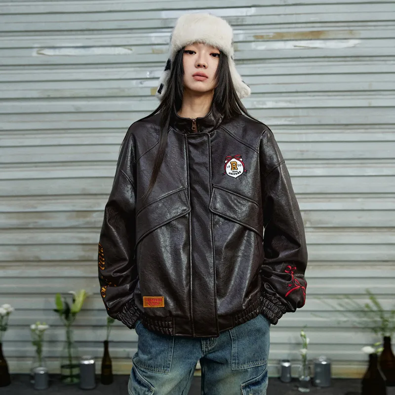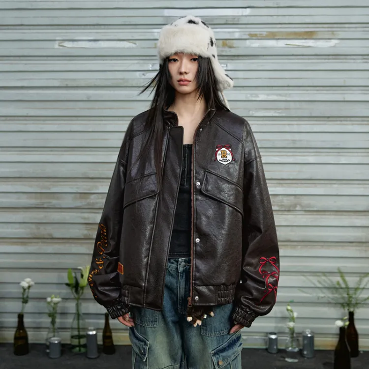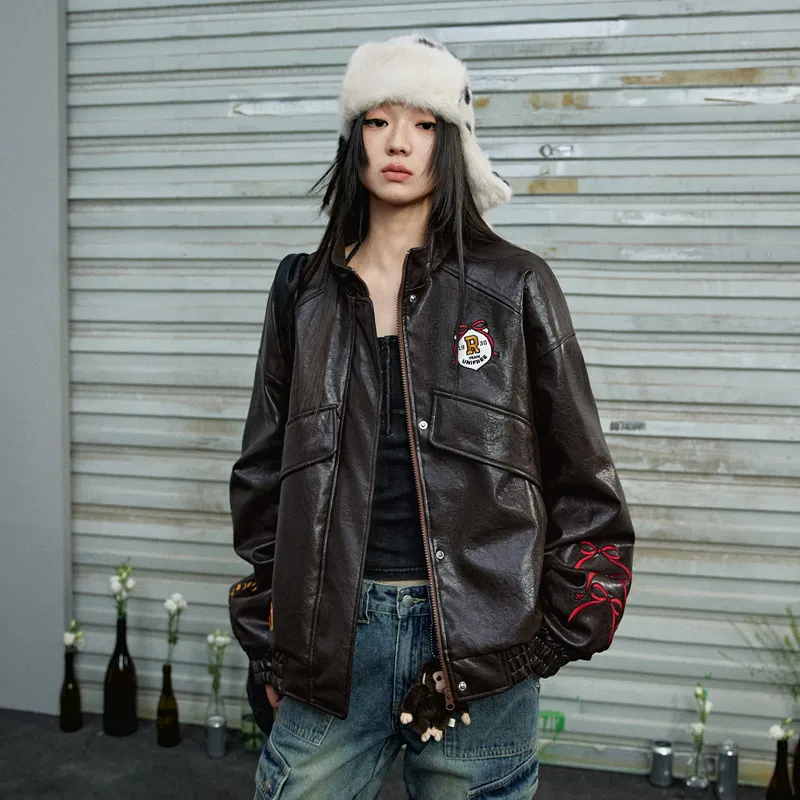 Unifree X 베티 Boop™ 콜라보레이션 시리즈 브라운 여성 가죽 자켓 - POIZON