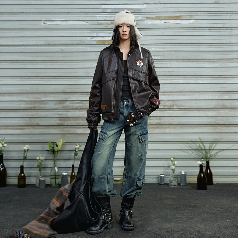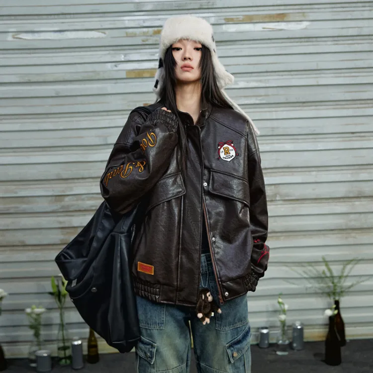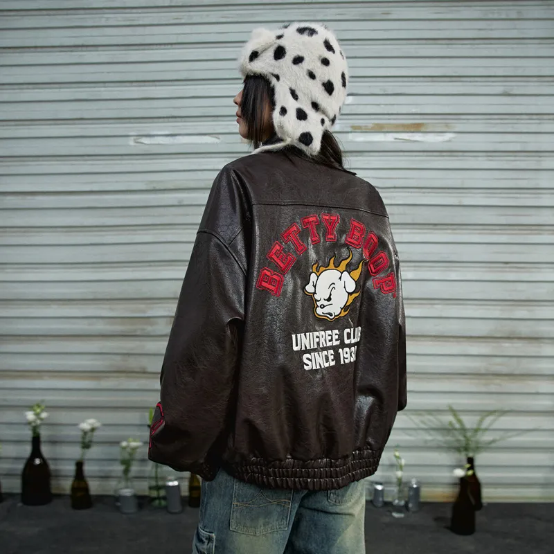 Unifree X 베티 Boop™ 콜라보레이션 시리즈 브라운 여성 가죽 자켓