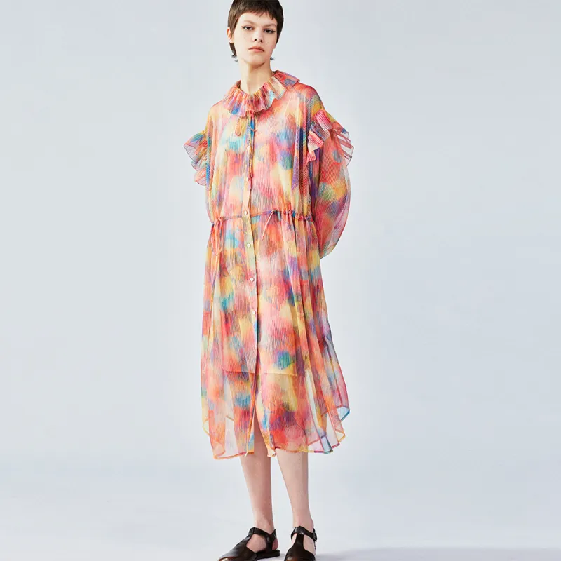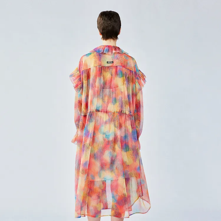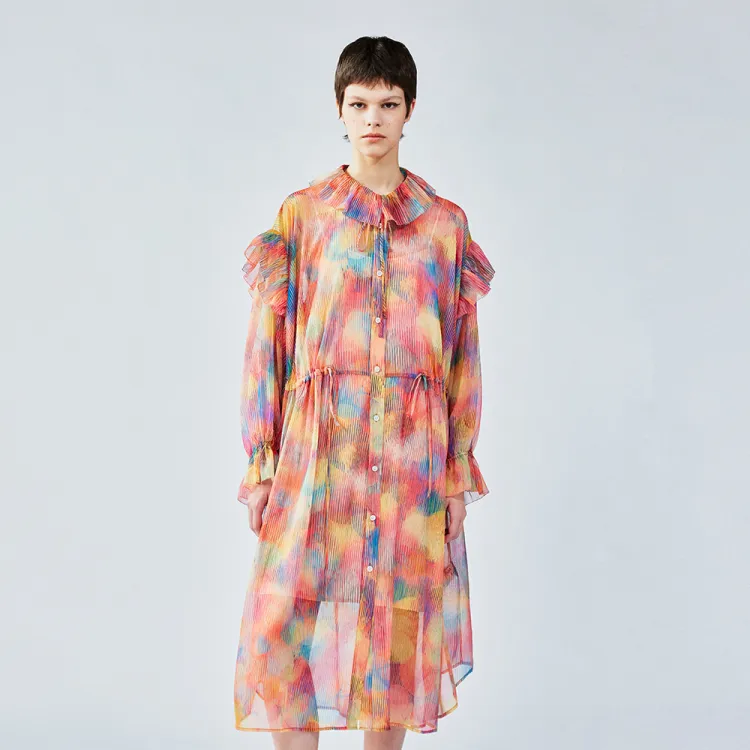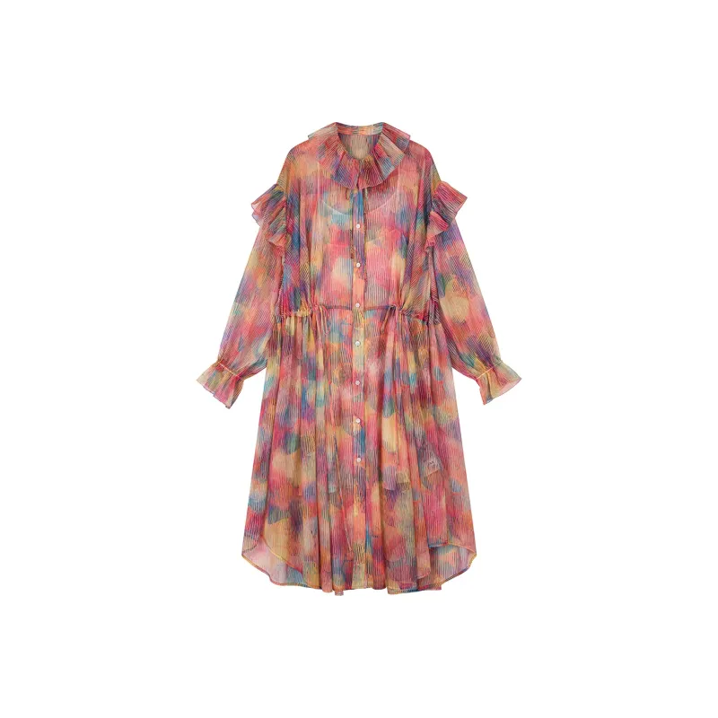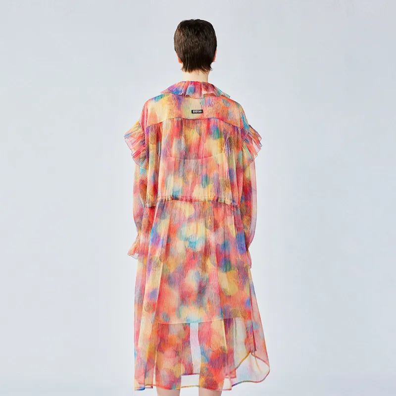 UOOYAA 프린팅 여성 긴팔 원피스 - POIZON