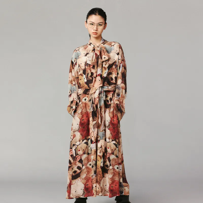 UOOYAA 프린팅 여성 긴팔 원피스 - POIZON