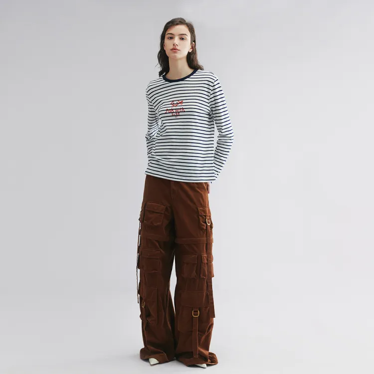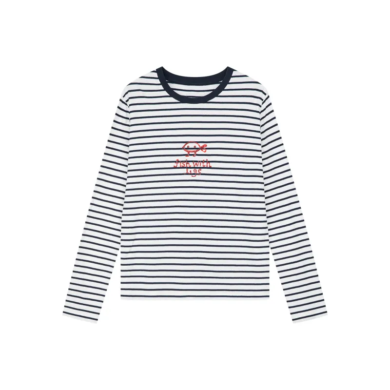 UOOYAA 스트라이프 패턴 여성 티셔츠 - POIZON
