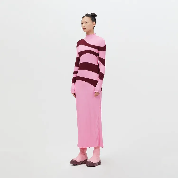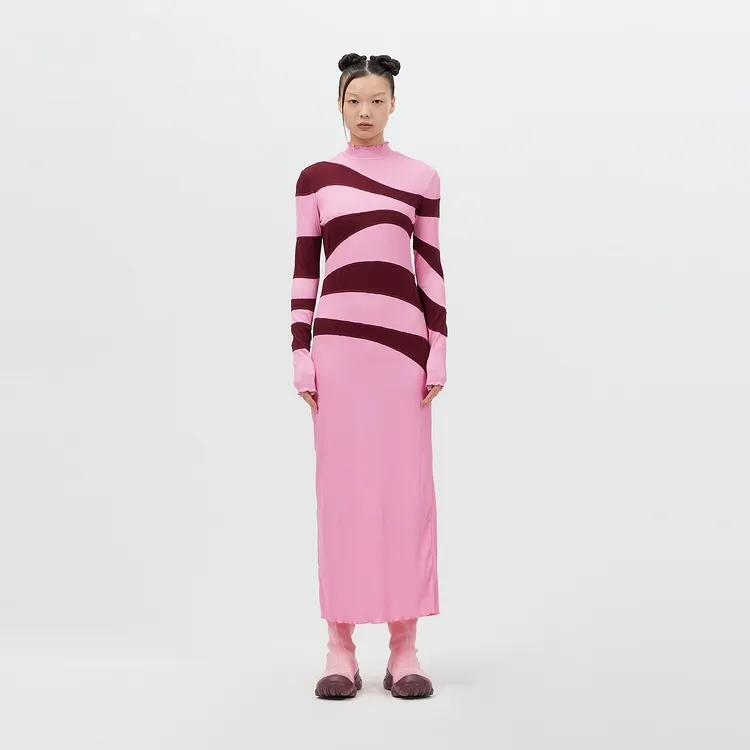 UPON PRO 배색 여성 긴팔 원피스 - POIZON