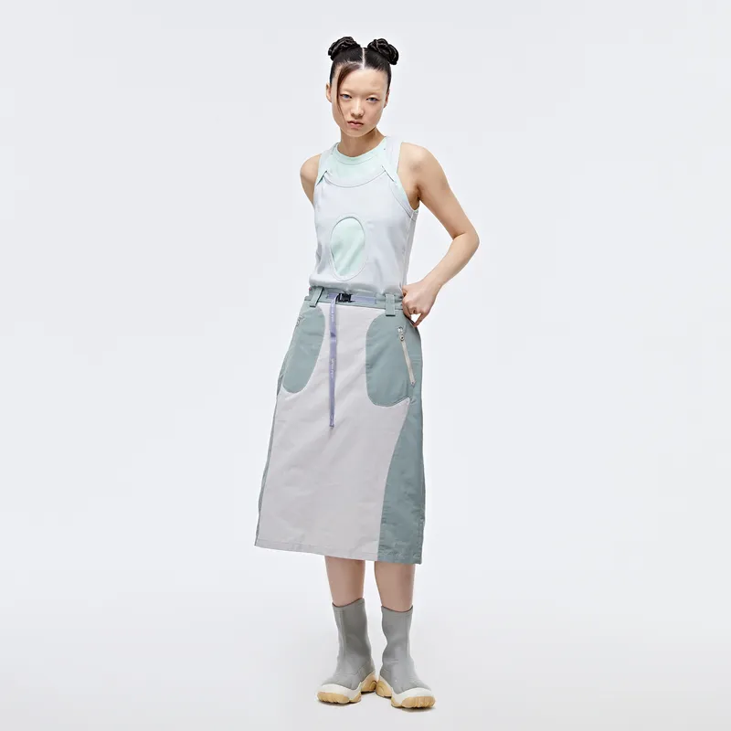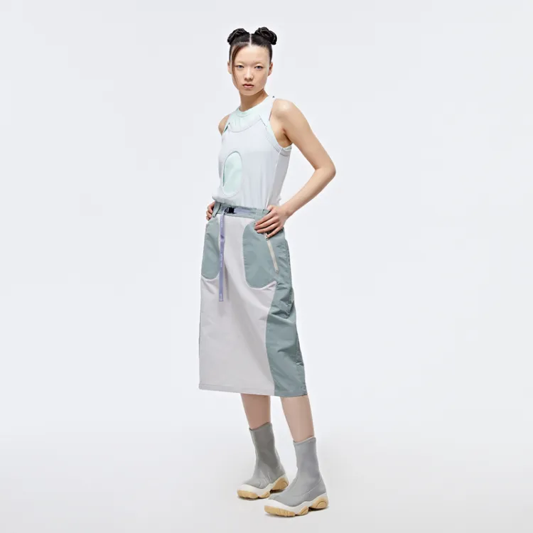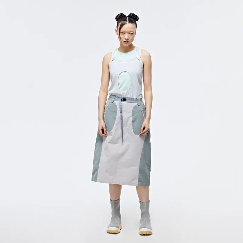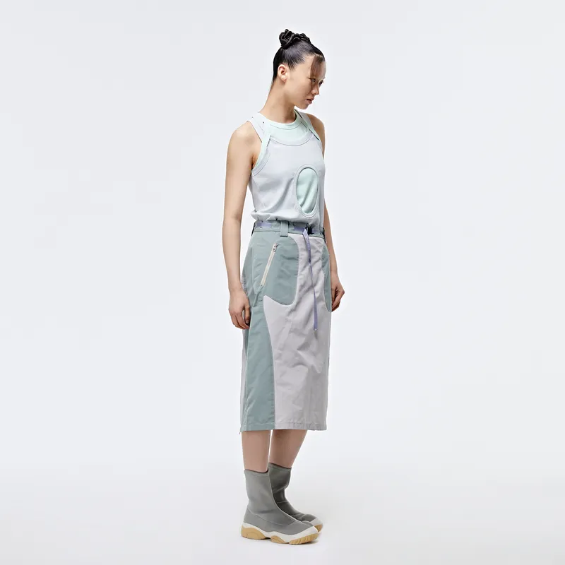 (라이트 그레이 블루) 91.0% 면, 9.0% 엘라스테인 (민트 그린) 76.4% 폴리아미드, 13.6% 비스코스, 10.0% 엘라스테인
