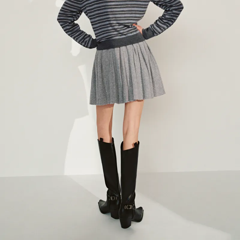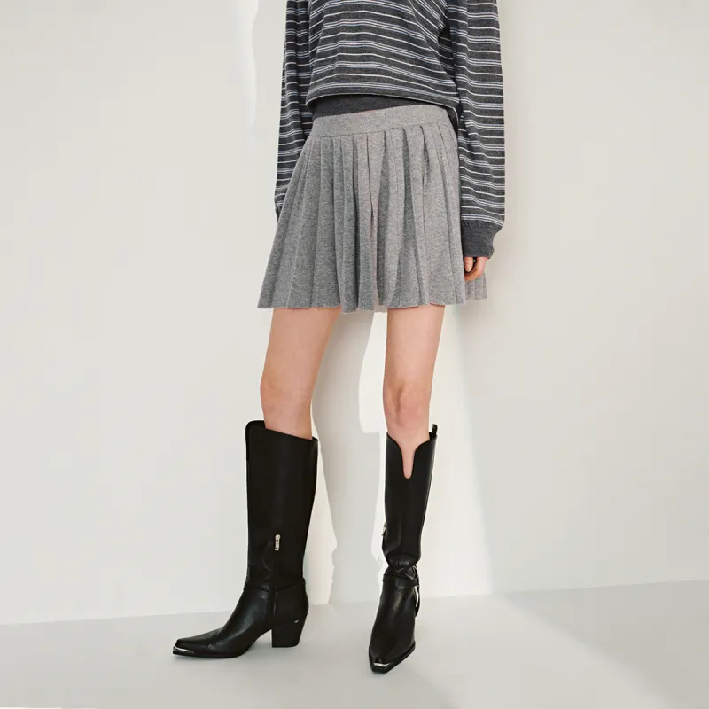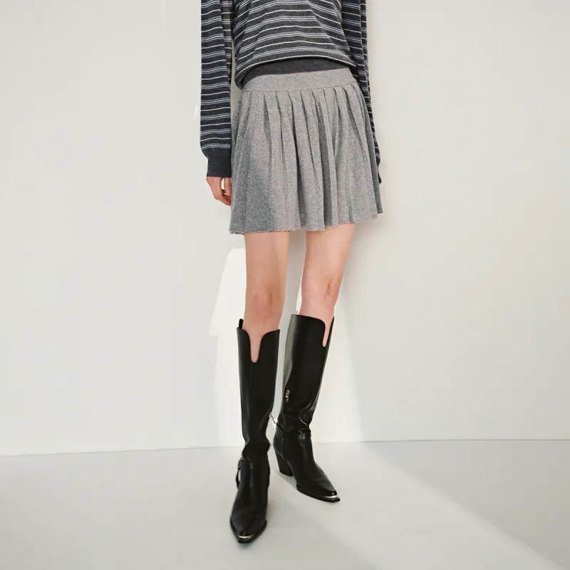 URppp 캐주얼 미니스커트 여성 그레이 울 우븐 스커트