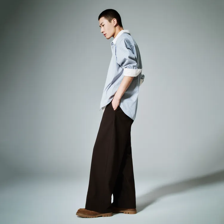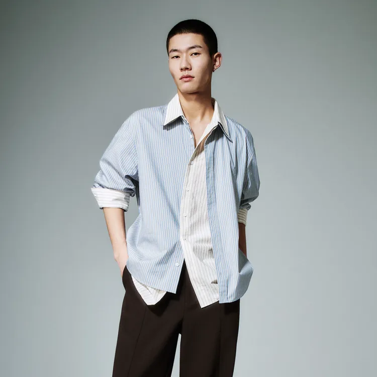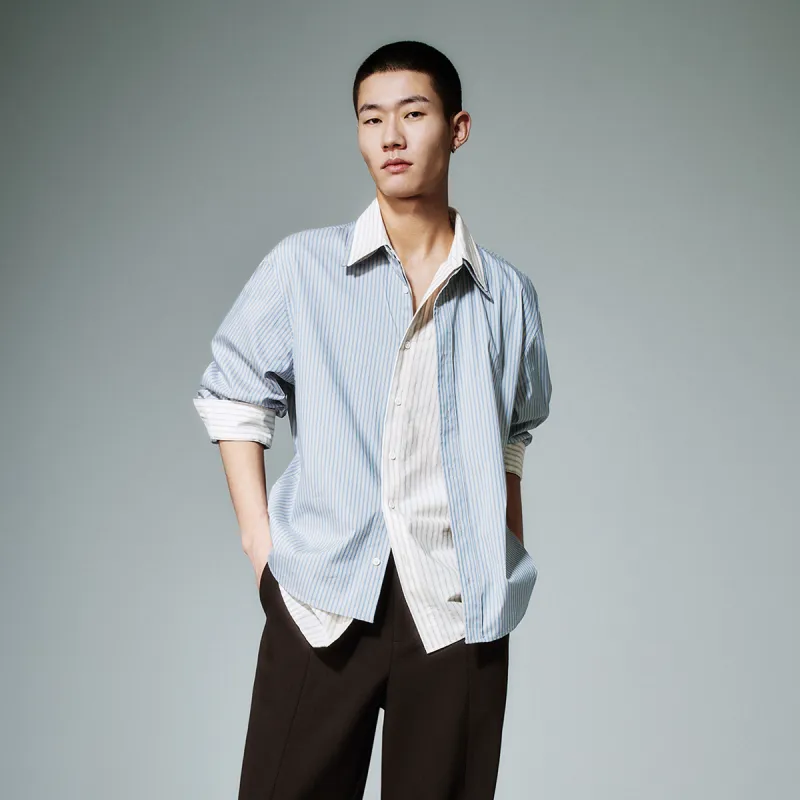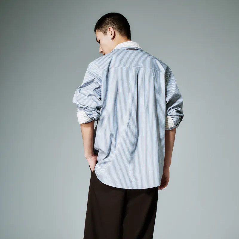 URppp 블라우스 남성 미디엄 그레이 블루 스트라이프 패턴 - POIZON