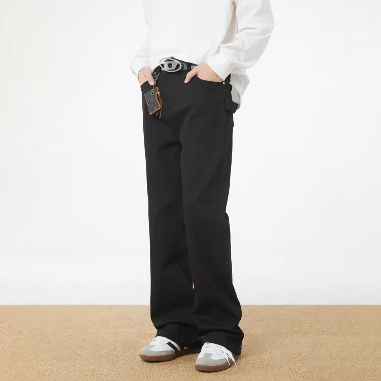 배치 1: 98% 면, 2% 스판덱스; 배치 2: 64% 면, 24.5% 폴리에스터, 10.5% 비스코스, 1% 스판덱스; 배치 3: 64% 면, 34% 폴리에스터, 2% 스판덱스; 기모 안감 선택 가능: 겉감 원단: 60% 면, 29% 폴리에스터, 10% 재생 셀룰로오스 섬유, 1% 스판덱스; 안감: 100% 폴리에스터.