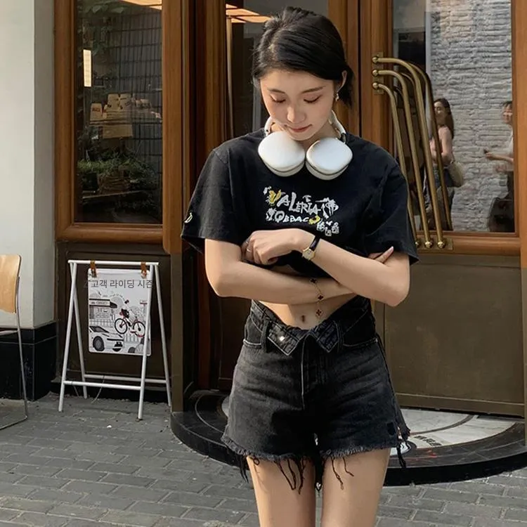 Valeria Obbaco 블랙 여성 데님 반바지 - POIZON
