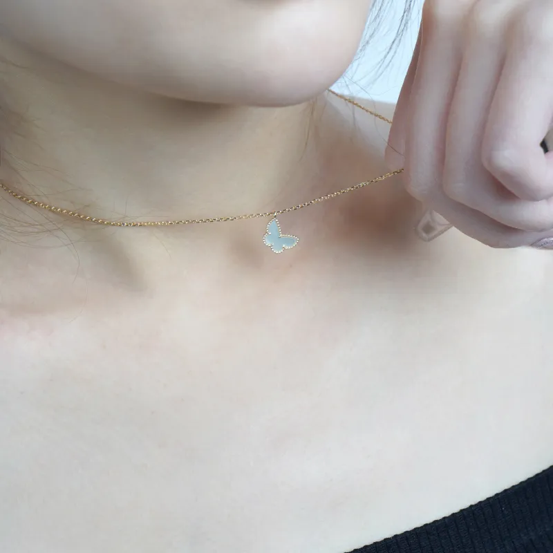 (W) 반 클리프 & 아펠 스위트 알함브라 버터플라이 펜던트 옐로우 골드 마더 오브 펄 - POIZON