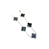 반 클리프 & 아펠 알함브라 포 리프 럭키 시리즈 피에터사이트 팔찌 여성 실버/블루