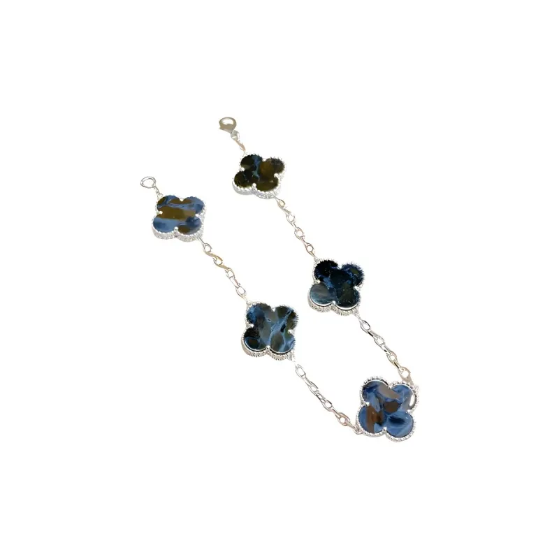 반 클리프 & 아펠 알함브라 포 리프 럭키 시리즈 피에터사이트 팔찌 여성 실버/블루 - POIZON