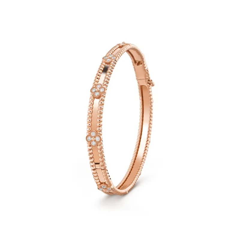 반 클리프 & 아펠 다이아몬드 패턴, 18K 골드 뱅글 여성 로즈 골드