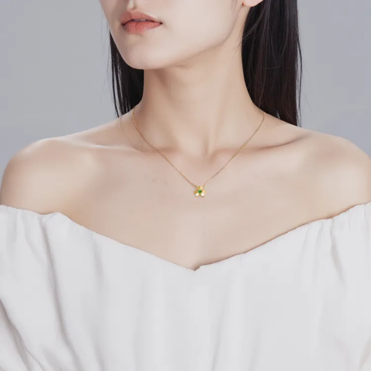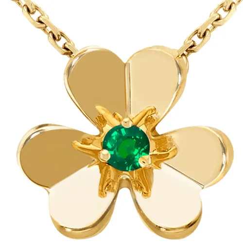 (W) 반 클리프 & 아펠 프리볼 클립 펜던트 미니 옐로우 골드 에메랄드 - POIZON
