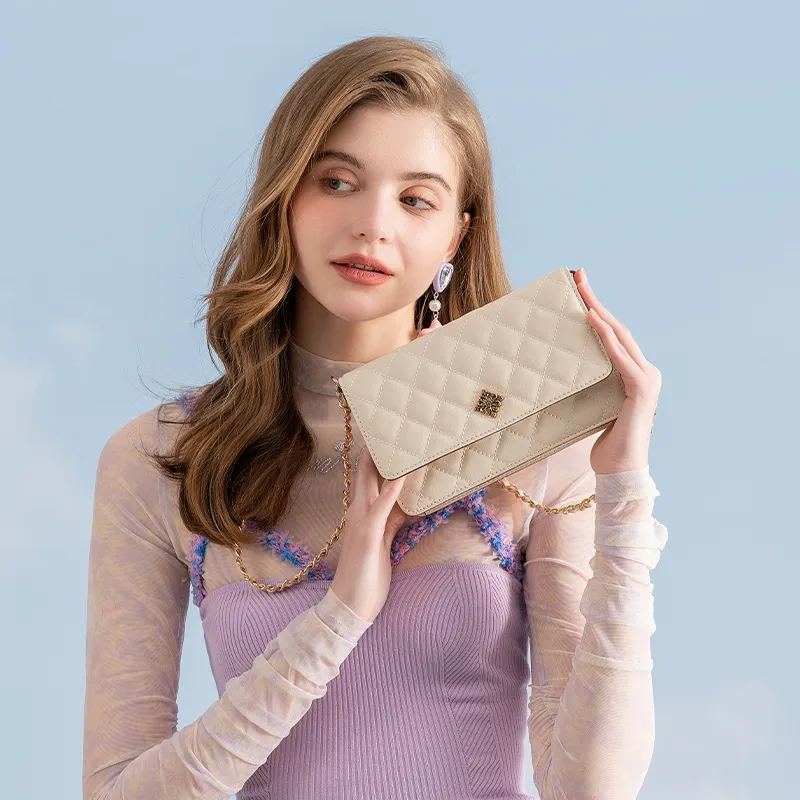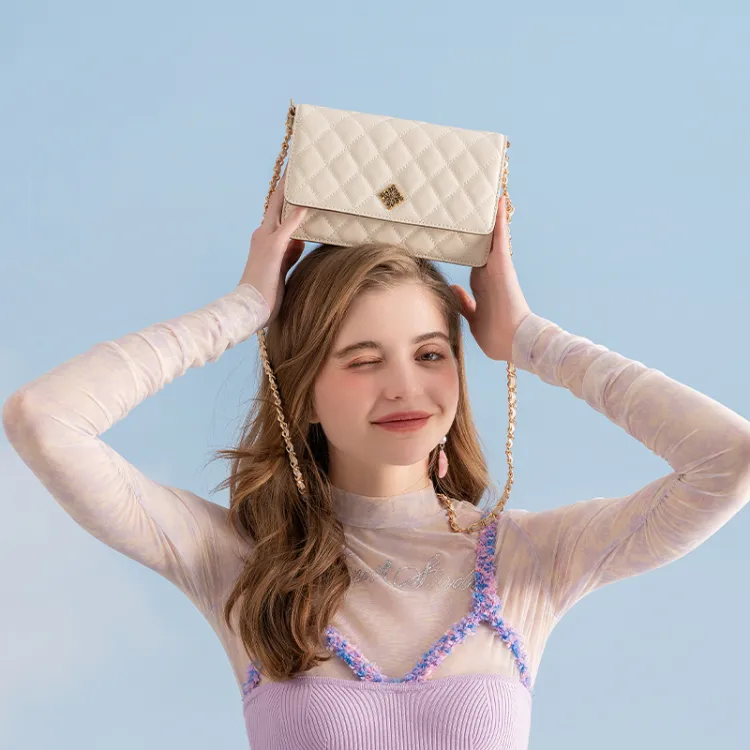 VANESSA HOGAN 소가죽 다이아몬드 패턴 가방, 체인 백, <브랜드_1>e 어깨 크로스백 레귤러 여성 화이트 - POIZON