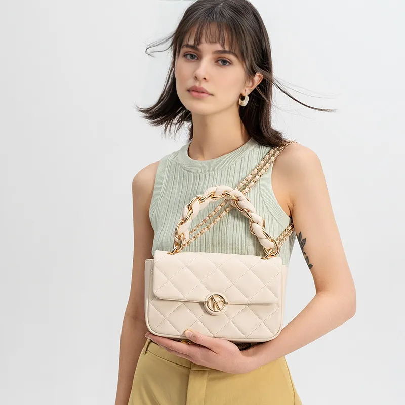 VANESSA HOGAN Lingge 시리즈 가죽 <브랜드_1> E 어깨 크로스백, 핸드백 M 여성 아이보리/블루 - POIZON