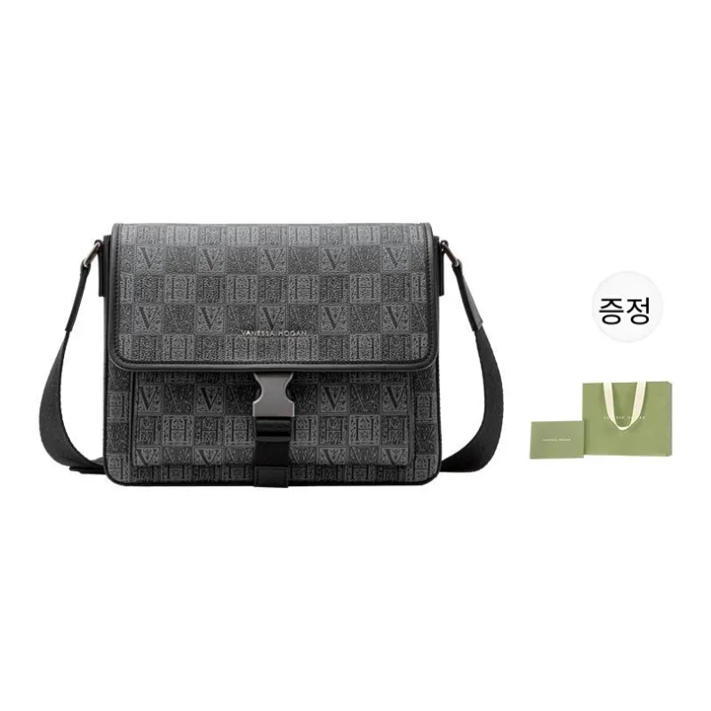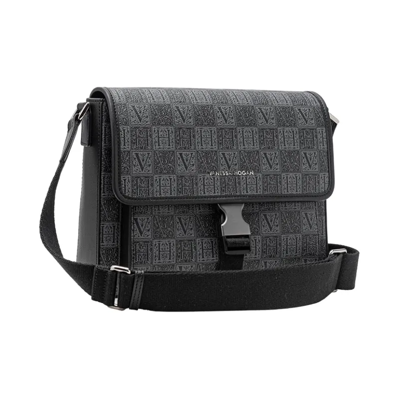 VANESSA HOGAN 모노그램 합성 가죽 메신저 백, <브랜드_1>e 어깨 크로스백 L 남성 블랙 - POIZON