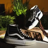 반스 SK8 HI 리컨스트럭트 하이탑 스케이트보드 신발 남녀공용 블랙 화이트 - POIZON