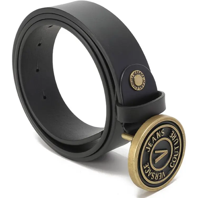 베르사체 진 쿠튀르 V EMBLEM 버클 빈티지 트리밍 가능 소가죽 가죽 벨트 남성 블랙 골드 3.5CM - POIZON
