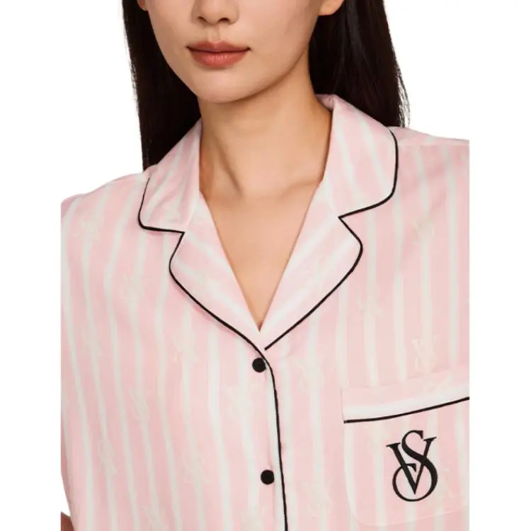 빅토리아 시크릿 파자마 세트 여성 핑크 화이트 스트라이프 패턴 - POIZON