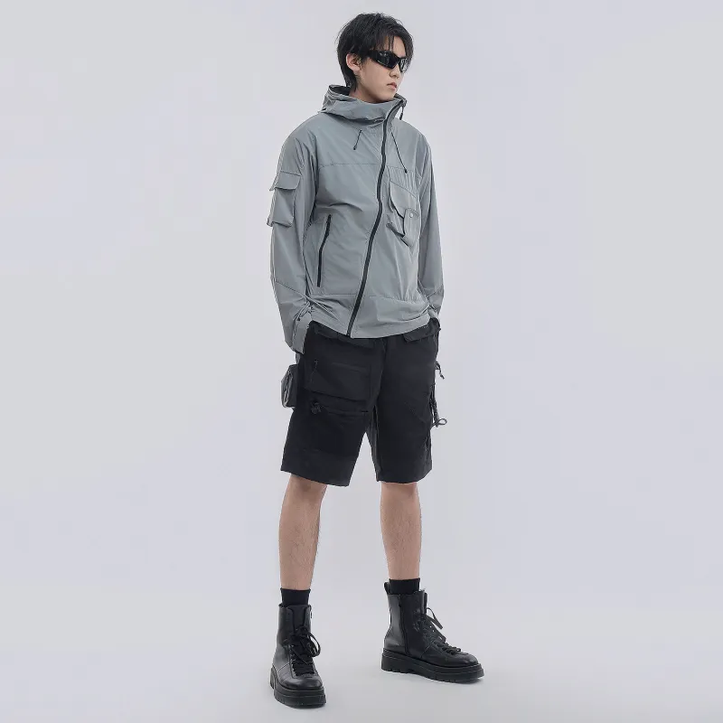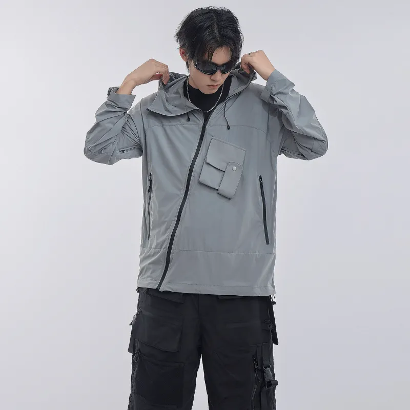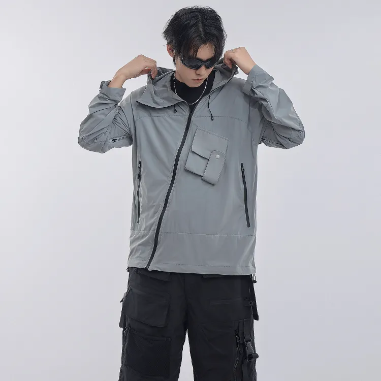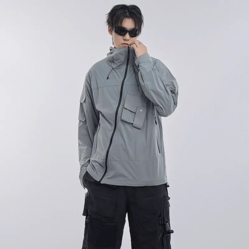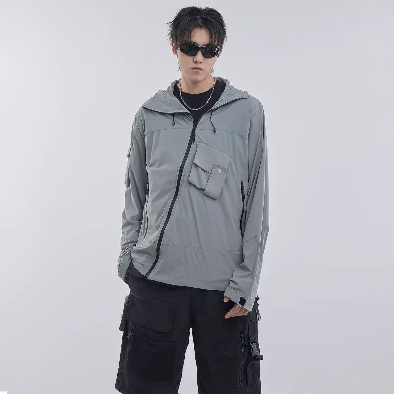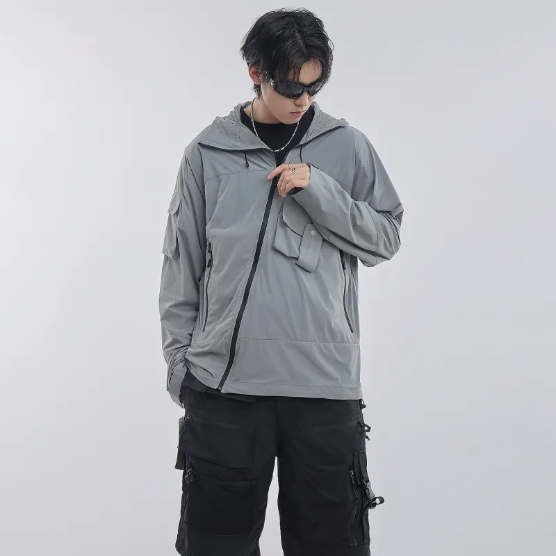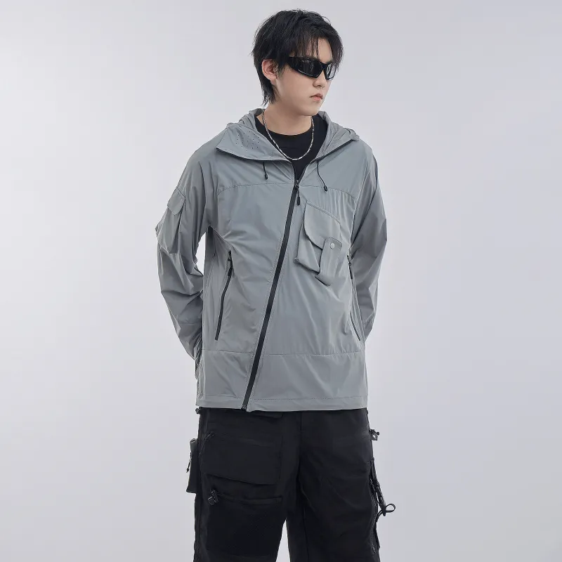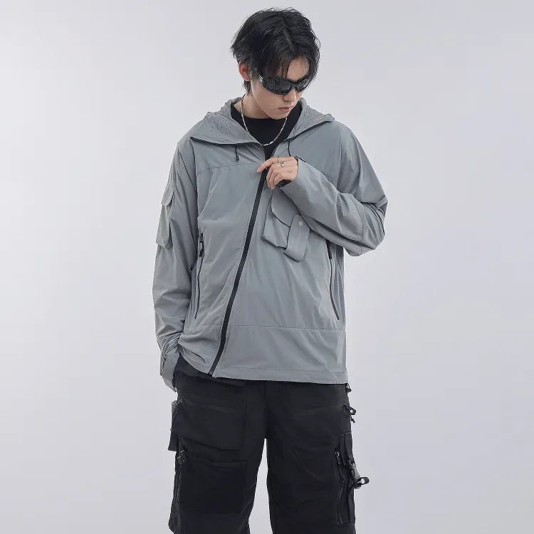 VIP 멀티 포켓 단색 지퍼 후드 자외선 차단 옷 남녀공용 그레이