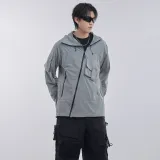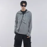 VIP 멀티 포켓 단색 지퍼 후드 자외선 차단 옷 남녀공용 그레이 - POIZON
