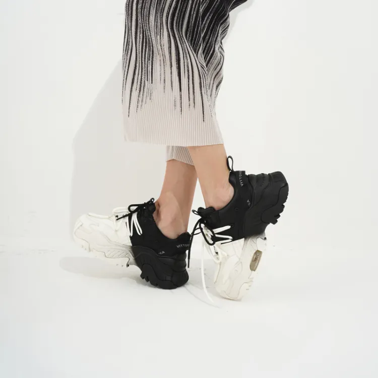 VITTORIO VENTURA 미끄럼 방지+내마모성 로우탑 청키 스니커즈 남녀공용 블랙 화이트
