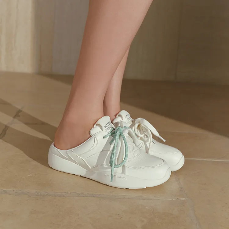 VITTORIO VENTURA 독일어 Army 스타일 로우탑 캐주얼 슬리퍼 여성 화이트