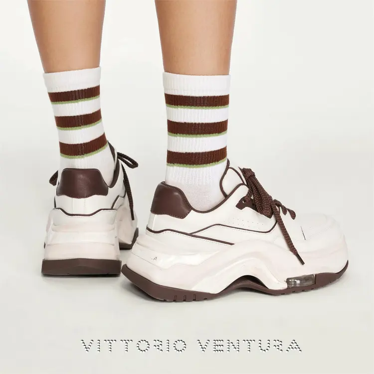 VITTORIO VENTURA 로우탑 캐주얼화 여성 아이보리 와 커피 에지 - POIZON