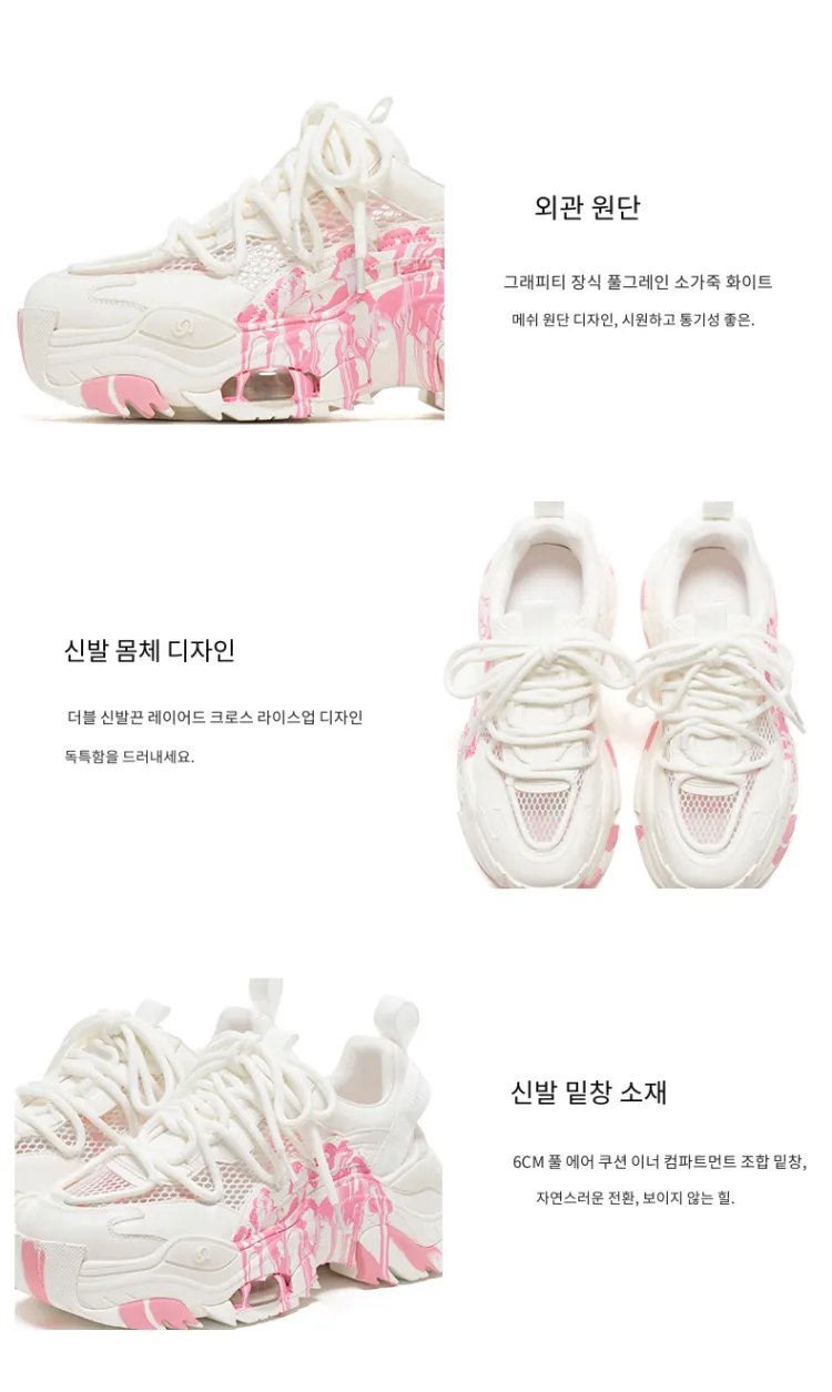 VITTORIO VENTURA 로우탑 청키 스니커즈 여성 핑크 화이트 그래피티