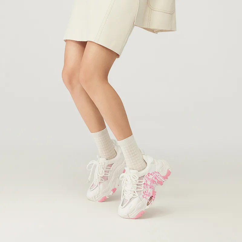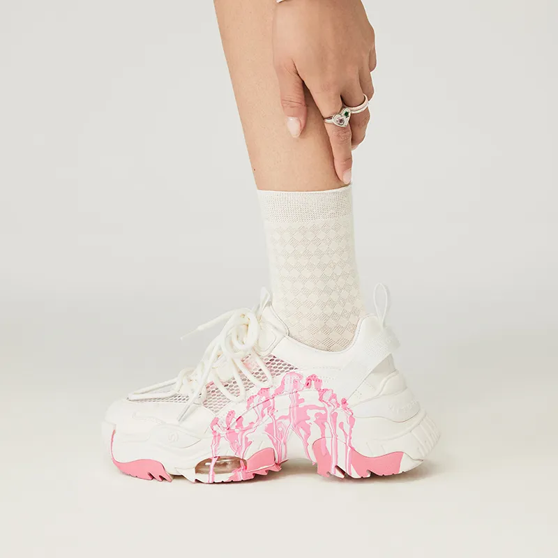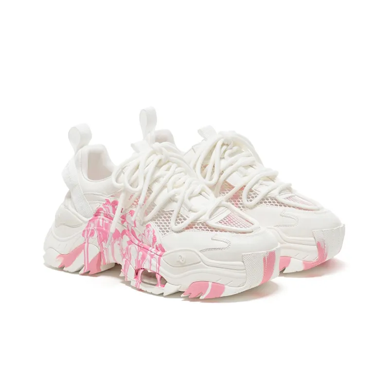 VITTORIO VENTURA 로우탑 청키 스니커즈 여성 핑크 화이트 그래피티 - POIZON