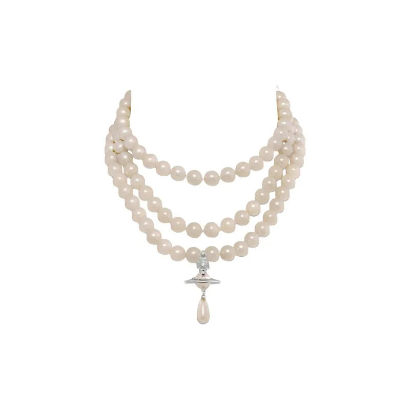 비비안 웨스트우드 삼열 진주 드롭 브래스 목걸이 여성 - POIZON