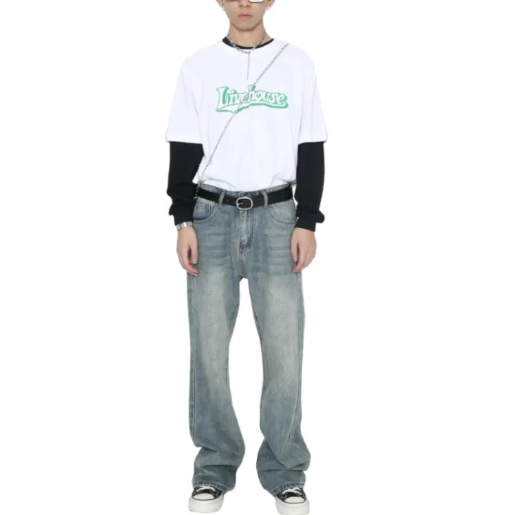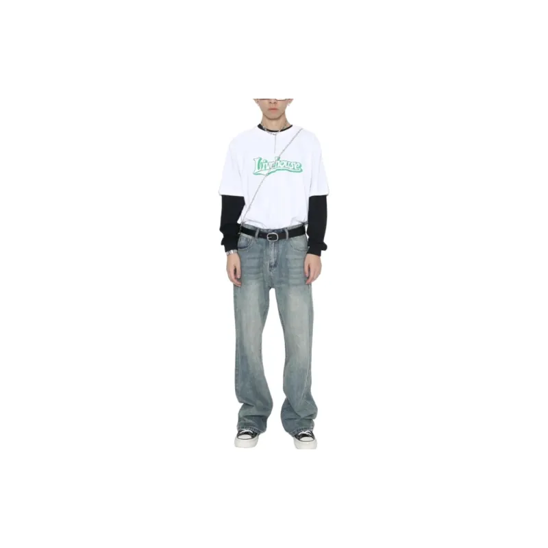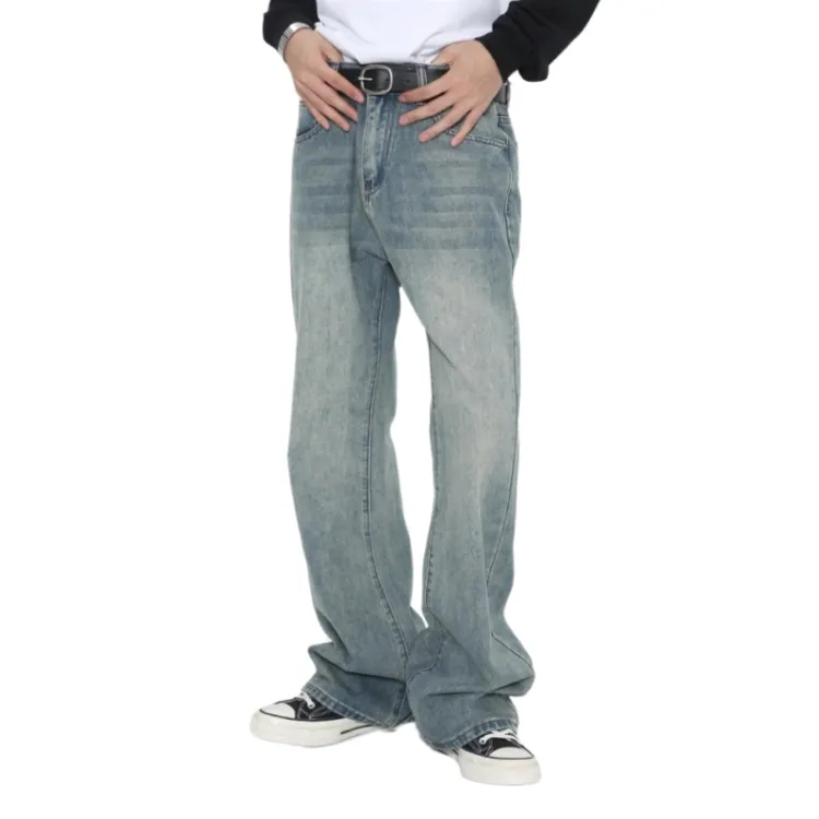 Voguo Relay 빈티지 블루 그린 남녀공용 청바지 - POIZON