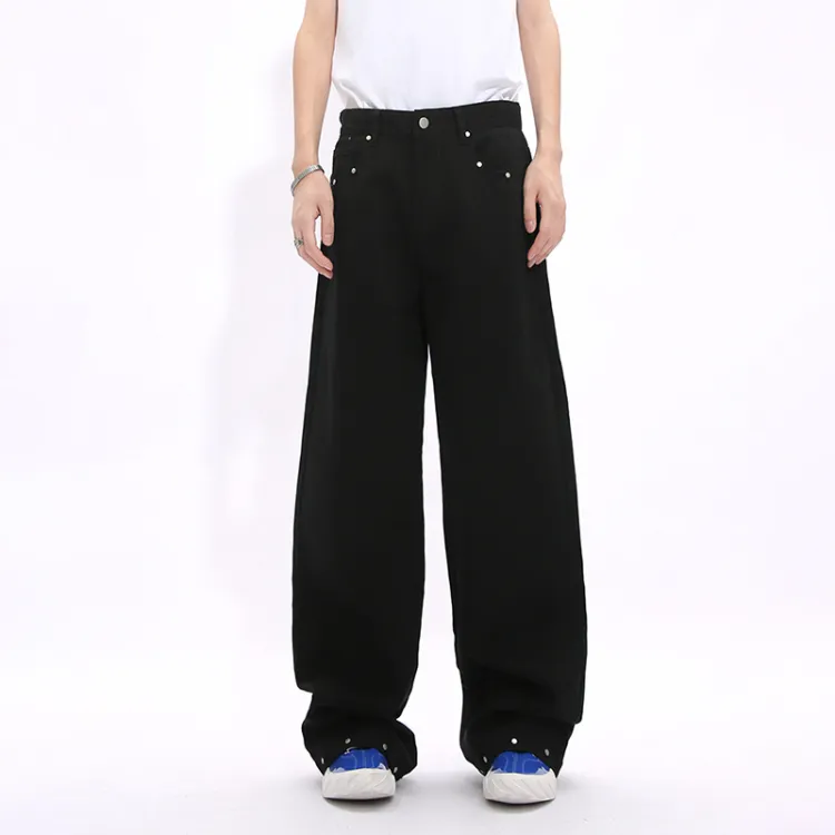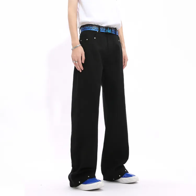 Voguo Relay 루즈핏 스트레이트핏 캐주얼 팬츠 남녀공용 블랙 화이트