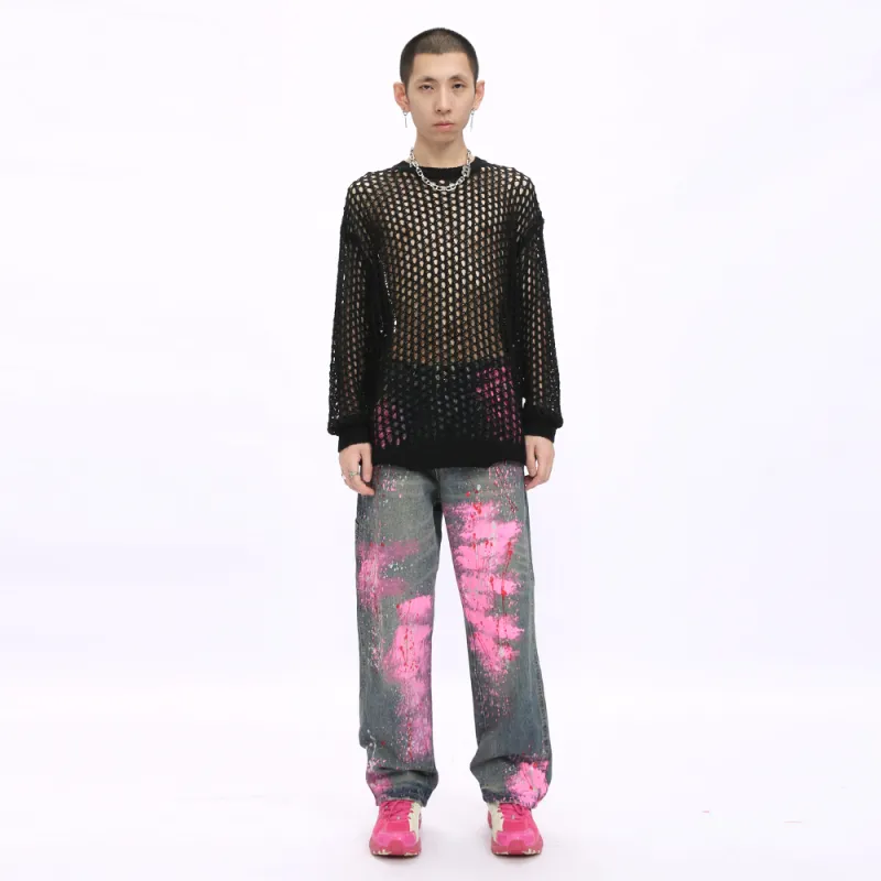 Voguo Relay 플럼 블라썸 레드 남녀공용 청바지 - POIZON