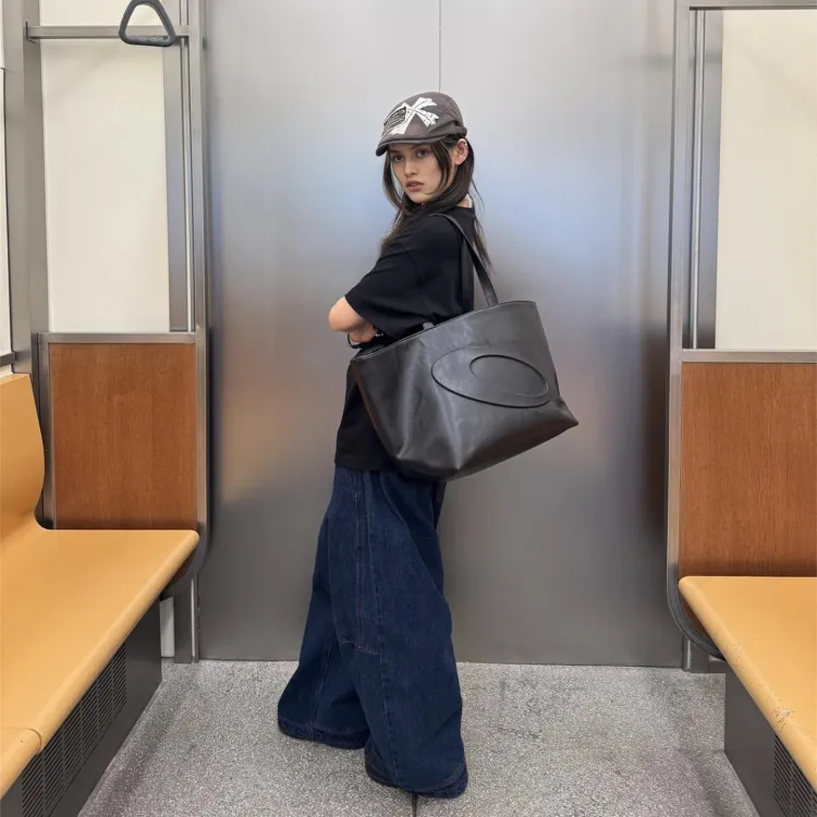 VULCAN STORE PU 토트 가방, 쇼핑백, 핸드백 남녀공용 블랙 - POIZON