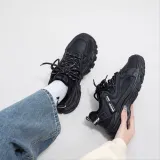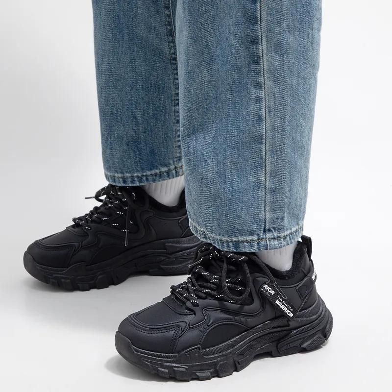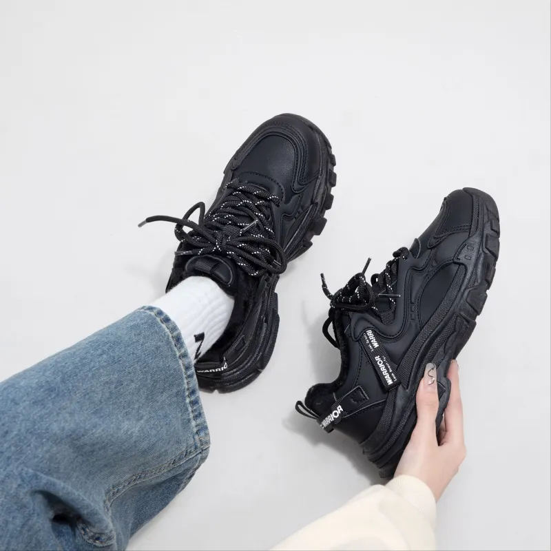 전사 워리어 미끄럼 방지 및 내마모성 키높이 로우탑 청키 스니커즈 여성 블랙 - POIZON